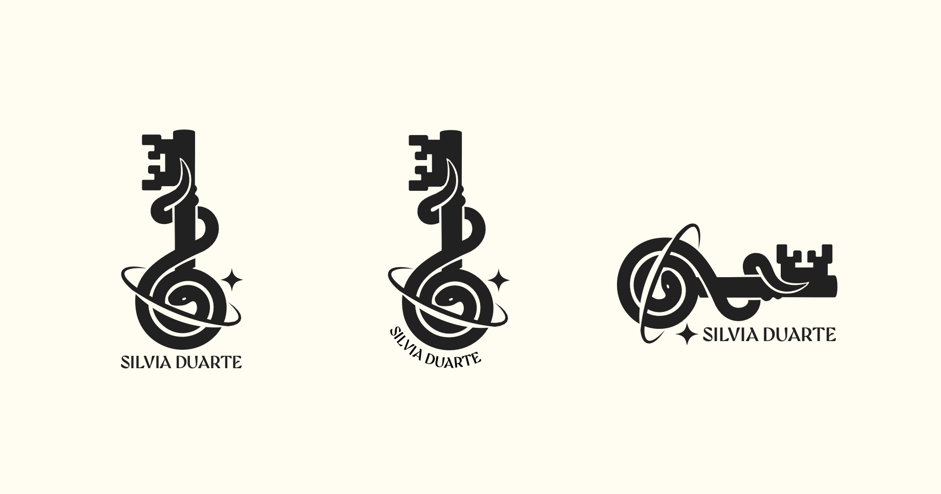 The logo anchors the duality of her brand: a structured symbol mark that brings clarity and order, while drawing on shamanic symbolism, with the serpent representing wisdom, transformation, and movement between worlds, and the stars’ iconography speaking to guidance and the unseen.